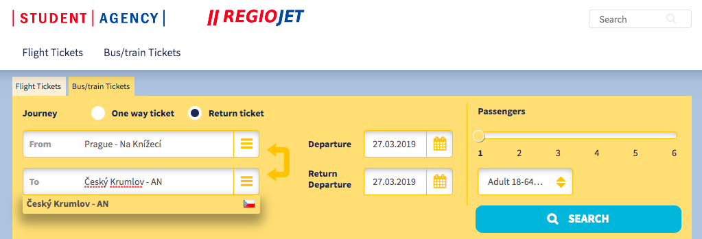 在 From 那一欄選擇 Praha, Na Knížecí;To 那一欄選擇 Český Krumlov, AN